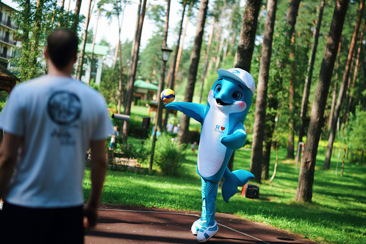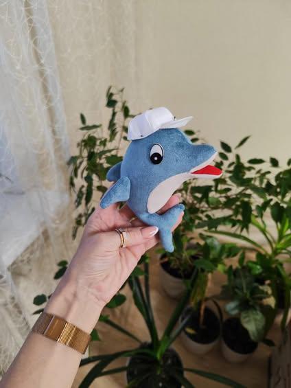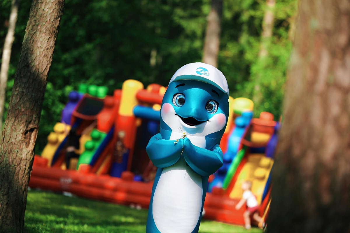 Также по рисунку Анастасии была изготовлена ростовая кукла «Дельфин», которая теперь - маскот нашей компании, и с нами на каждом мероприятии!