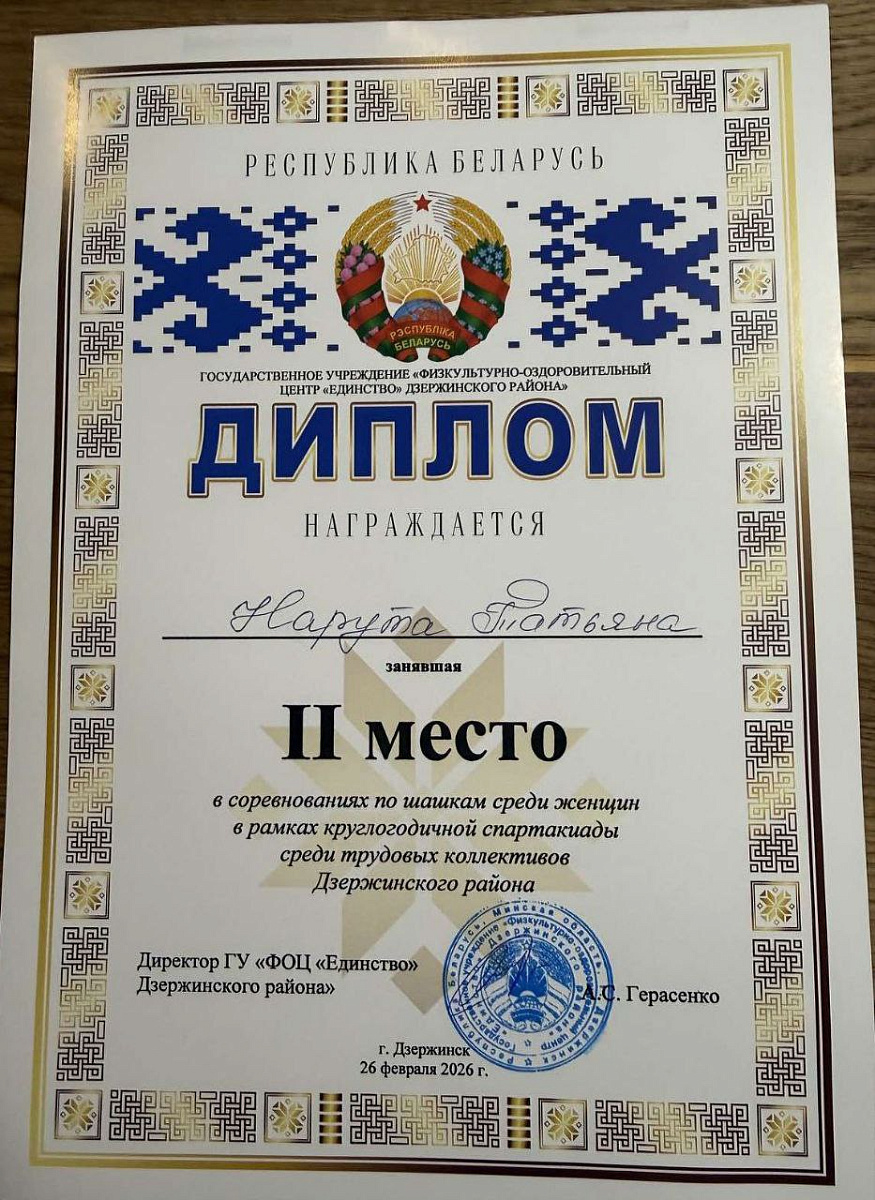 26 февраля 2026 года команда ОАО «БЕЛХИМ» традиционно приняла участие в соревнованиях по шашкам в рамках круглогодичной спартакиады среди работников организаций Дзержинского района, проводимых на базе гимназии №1 г. Дзержинска.